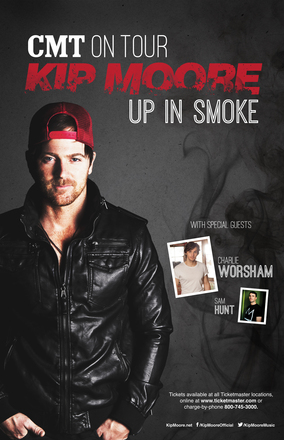 PLATINUM-selling singer/songwriter Kip Moore will headline the CMT ON TOUR 2014: UP IN SMOKE this fall. The tour will kick off on Sept. 25 in New York, NY and will hit over 20 cities through November. Moore has tapped newcomers Charlie Worsham and Sam Hunt to come along for the ride. Tickets go on sale this Fri., June 6. For a full list of dates and more information, visit: http://www.cmt.com/music/cmt-on-tour/2014/.